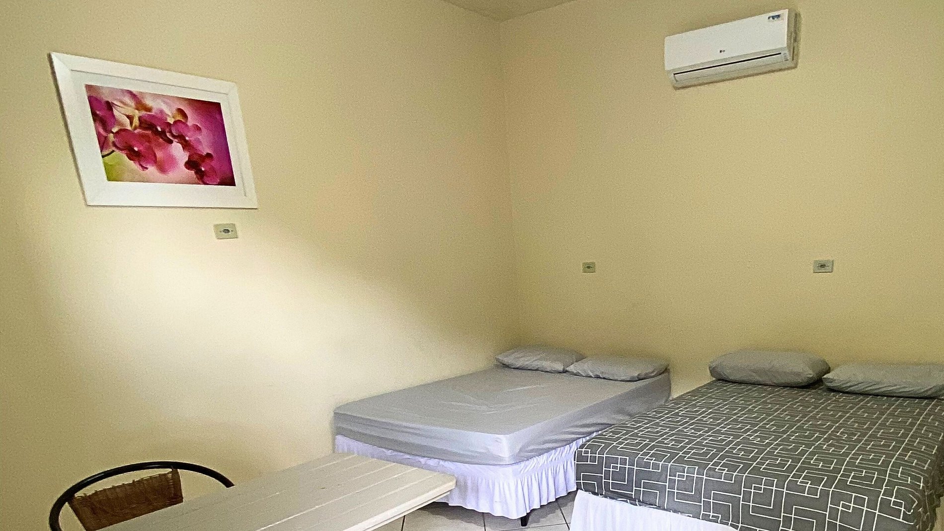 The suite has air conditioning, Sky TV, two double beds, a table with chairs and a private bathroom.