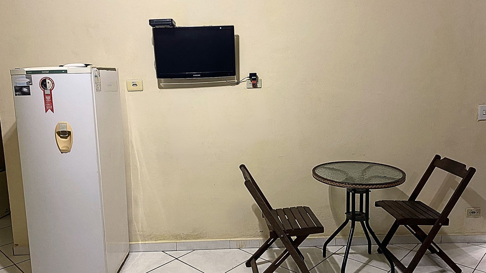 Located on Boiçucanga beach, the kitnet is next to the Atlantic Forest and just 100 meters from the beach and the nearest bus stop. Sleeps up to 5 people. Only one environment, being integrated into the suite with the kitchen (kitchenette).